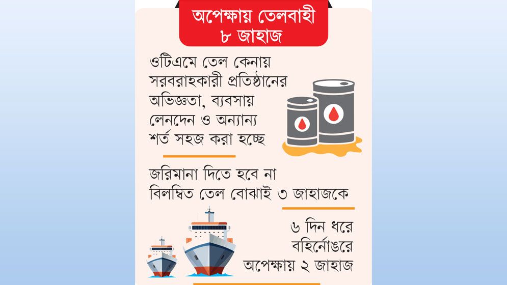 তবে অবকাঠামোগত সীমাবদ্ধতার কারণে একসঙ্গে দুটির বেশি জাহাজ থেকে তেল খালাস করা সম্ভব হচ্ছে না। ফলে কিছু জাহাজ বহির্নোঙরে কয়েক দিন ধরে অপেক্ষা করছে। তবুও দ্রুত তেল খালাসের জন্য জোর প্রচেষ্টা চালানো হচ্ছে।